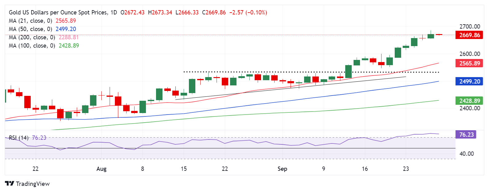 24K99讯 周五(9月27日)亚市尾盘,现货黄金维持日内回落走势,目前金价位于2466美元/盎司附近。FXStreet高级分析师Dhwani Mehta周五撰文,对金价技术走势进行分析。