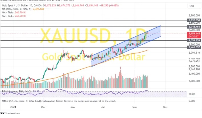 24K99讯 周一(9月30日)亚市盘中,现货黄金短线突然大跌,金价刚刚跌至2648美元/盎司附近,较稍早触及的日内高点2666.04美元/盎司大跌近18美元。知名财经网站FXDailyReport分析师Nicholas Kitonyi撰文,对黄金后市走势进行分析。