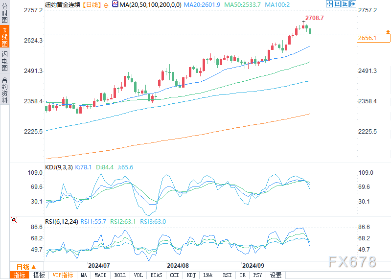 从技术层面看,COMEX 12月黄金多头近期整体技术优势强劲。多头的下一个上行目标是在2,800.00美元的稳固阻力位上方收盘。空头的下一个近期下行目标是将期货价格推至坚实的技术支撑位2,600.00美元以下。第一个阻力位见于隔夜高点2,687.70美元,然后是合约高点2,708.70美元。第一个支撑位见于2,650美元,然后是2,635.00美元。