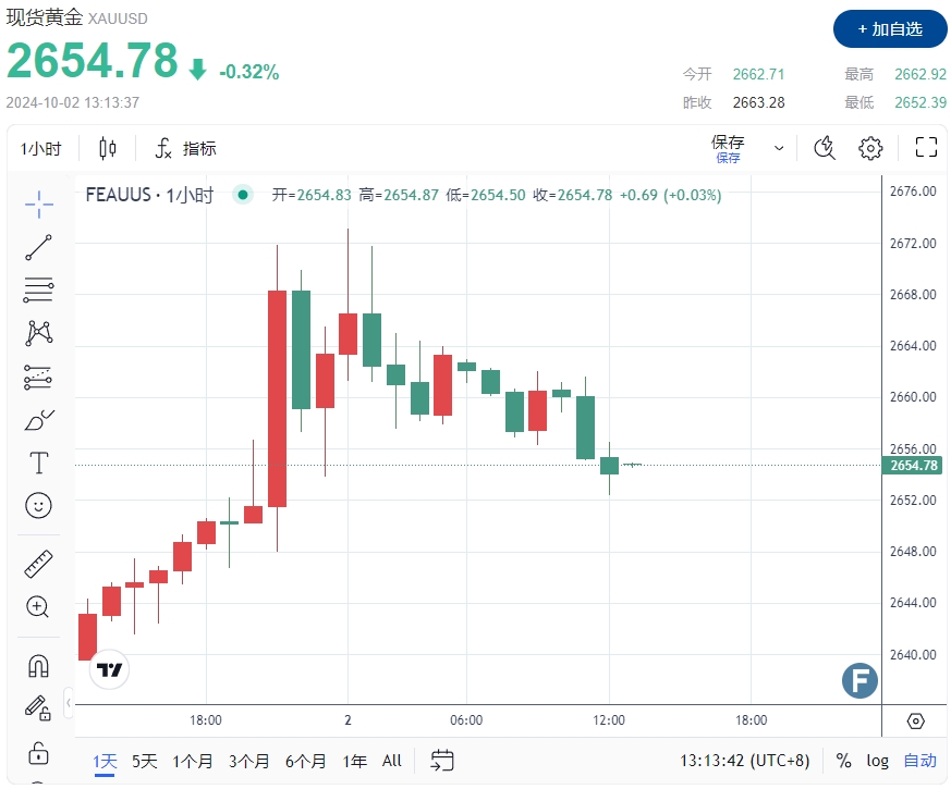 24K99讯 周三(10月2日)亚市午盘,黄金价格在2654美元维持强势,多头仍掌控局面。技术分析认为,金价若能冲破2686美元直接阻力,紧随其后将剑指2700美元大关。以色列再次袭击黎巴嫩首都,标普下调以色列主权评级,伊朗狂轰200枚导弹后结束报复以色列行动。