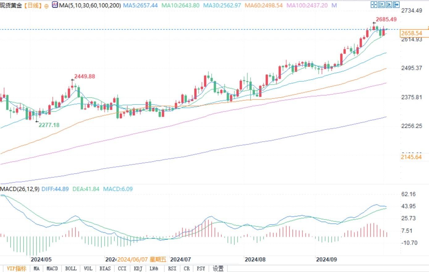 北京时间10月2日9:20,现货黄金报2658.11美元/盎司