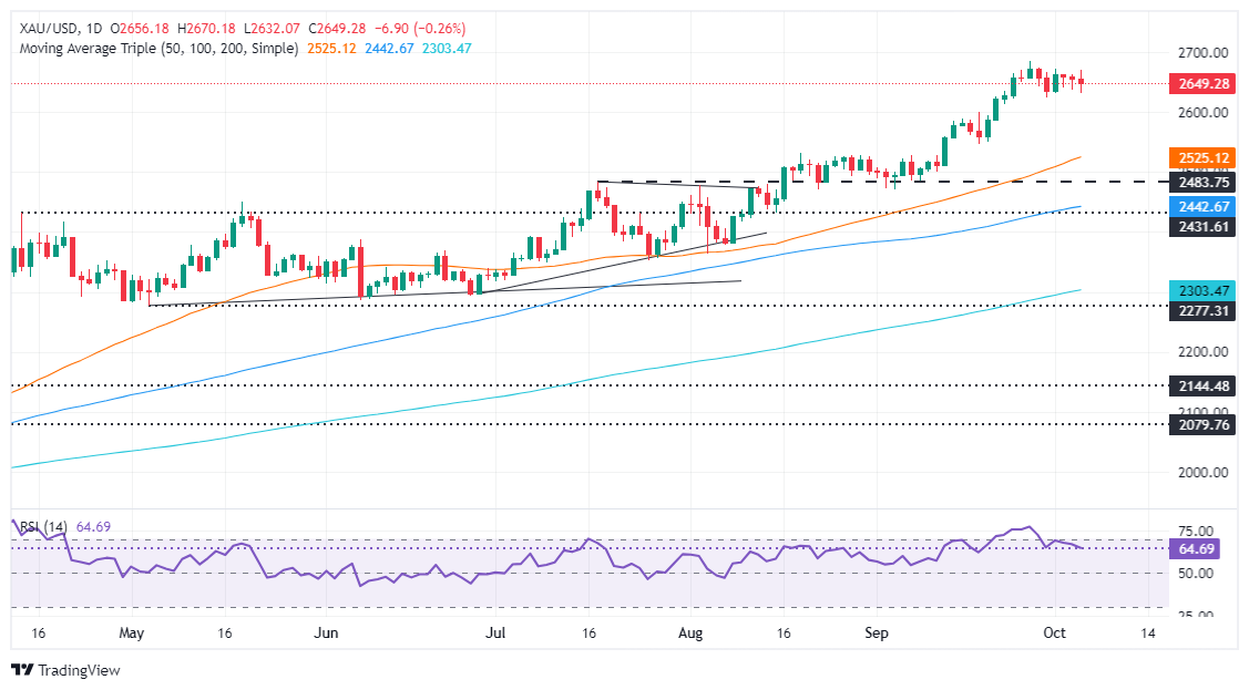 FXStreet分析师Christian Borjon Valencia指出,因强劲的美国非农就业数据暗示美联储将小幅降息,金价一度出现暴跌。然而,涉及以色列和伊朗的地缘政治风险支撑金价,金价后市可能触及2700美元/盎司。