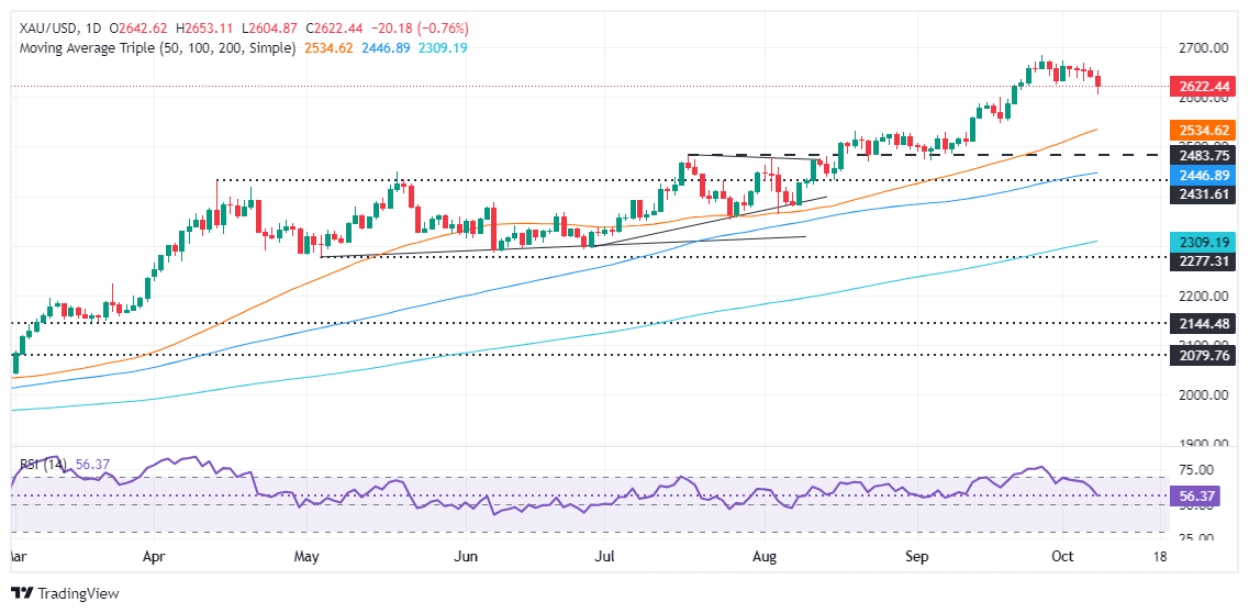周二(10月8日),现货黄金出现大幅回调,金价收盘大跌逾20美元,盘中一度跌向2600美元/盎司关口。FXStreet分析师Christian Borjon Valencia周三撰文,对金价走势进行分析。