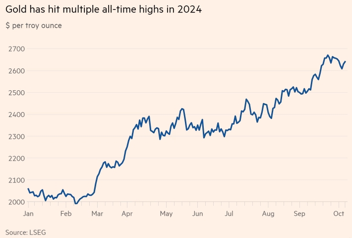 黄金涨势相当强劲,2024年迄今,黄金价格上涨了25%以上,目前徘徊在每金衡盎司略高于2600美元的水平。