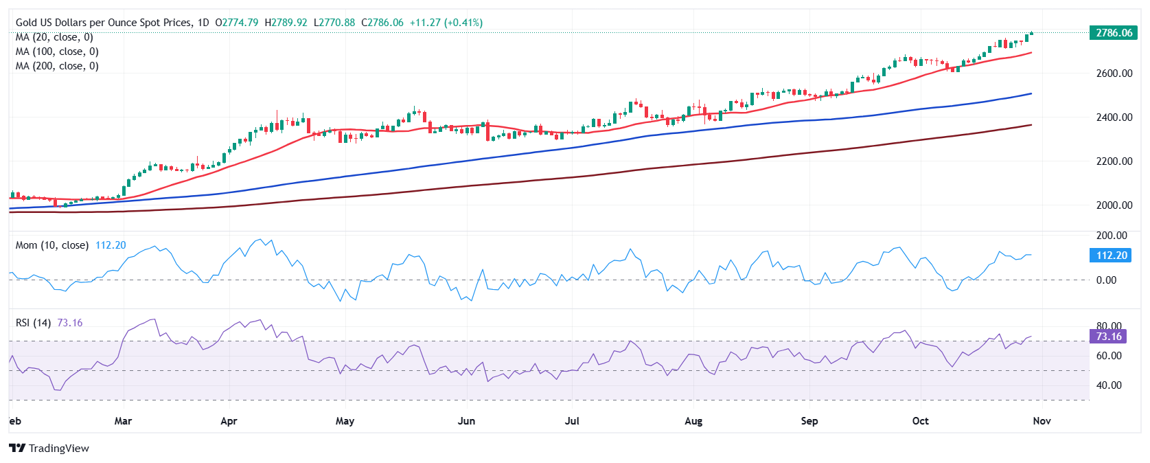 周四(10月31日)亚市盘中,现货黄金位于2788美元/盎司,稍早创下纪录高位。FXStreet首席分析师Valeria Bednarik撰文,对黄金技术前景进行分析。