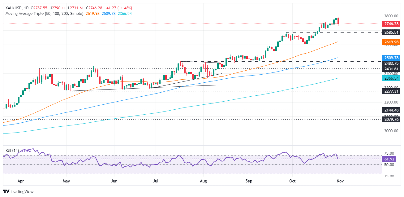 FXStreet分析师Christian Borjon Valencia指出,金价从历史高位回落,但仍偏向看涨。如果金价格保持在2700美元/盎司上方,那么一旦突破2750美元/盎司心理关口,金价有望进一步上涨,瞄准2790美元/盎司的历史高位。如果突破后者,那么2800美元/盎司关口将成为冲击的目标。