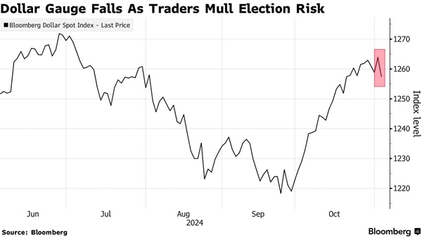 在周末民调数据显示哈里斯可能在一些摇摆州略微领先之后,投资者也在重新评估看涨美元的押注。整体竞争仍不分上下,没有明显的赢家,这加大了投票开始时市场波动加剧的风险。