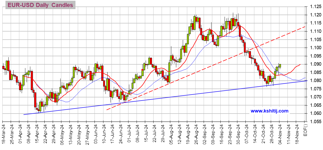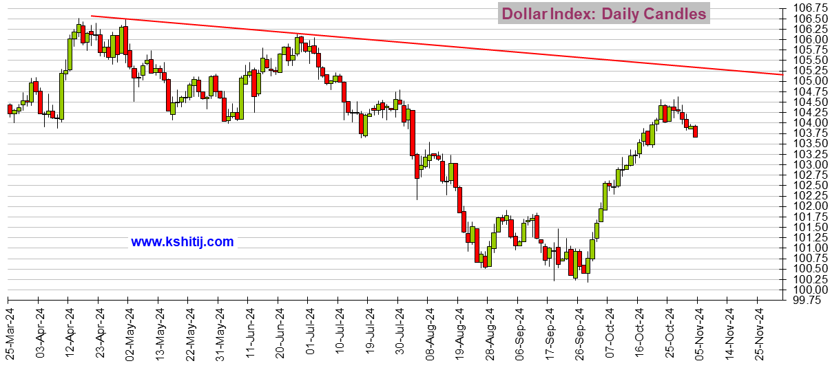 Kshitij咨询服务团队在文章中写道,由于市场对美国大选的猜测,美元指数仍不稳定。该指数短期内仍可在105-103之间波动。