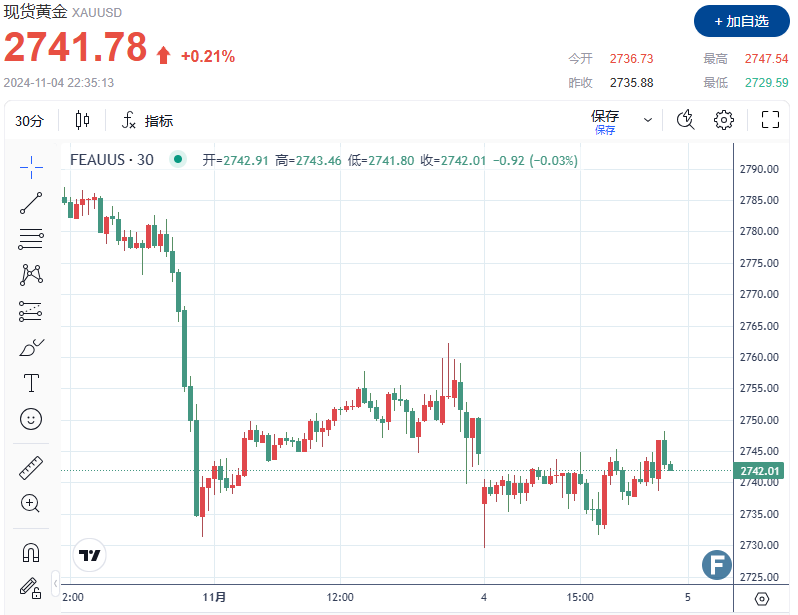 美国总统大选和美联储即将做出利率决定,尽管投资者在前夕保持谨慎, 但周一(11月4日)金价交投于2,740上方。