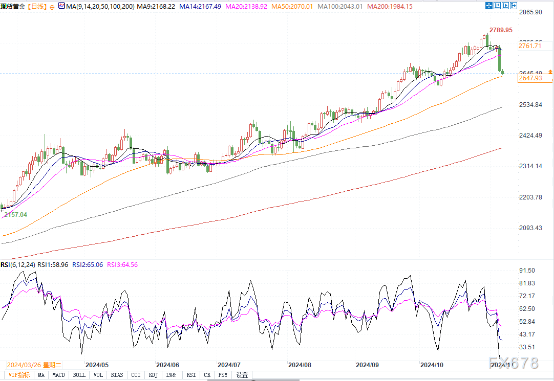 北京时间11月7日9:40,现货黄金报2647.74美元/盎司