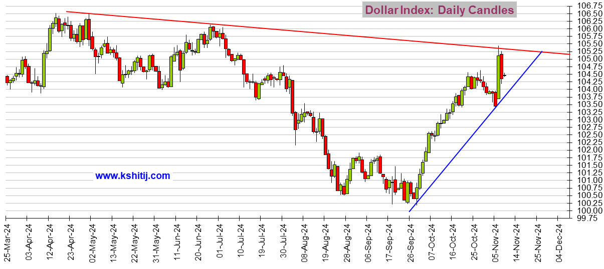 周五(11月8日)亚市盘中,美元指数在昨日大跌后反弹,目前位于104.55附近。现货黄金显著下滑,目前金价位于2695美元/盎司附近。本交易日,投资者将聚焦美国密歇根大学消费者信心指数,这份重要数据可能引发周末市场行情。Kshitij咨询服务团队(Kshitij Consultancy Service)周五最新撰文,对美元指数、欧元/美元、欧元/日元、美元/日元、英镑/美元以及美元/人民币后市走势进行前瞻分析。
