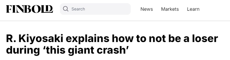 24K99讯 著名投资者、畅销个人理财书《富爸爸穷爸爸》的作者罗伯特·清崎(Robert Kiyosaki)就投资者如何应对他所谓的“巨大崩盘”分享了自己的见解。