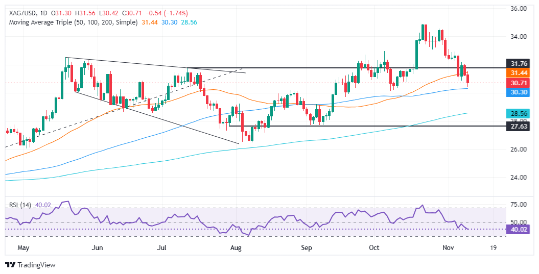 周一(11月11日),现货白银大跌近2%,失守31.00美元/盎司关口。FXStreet分析师Christian Borjon Valencia最新撰文,对银价技术走势进行分析。