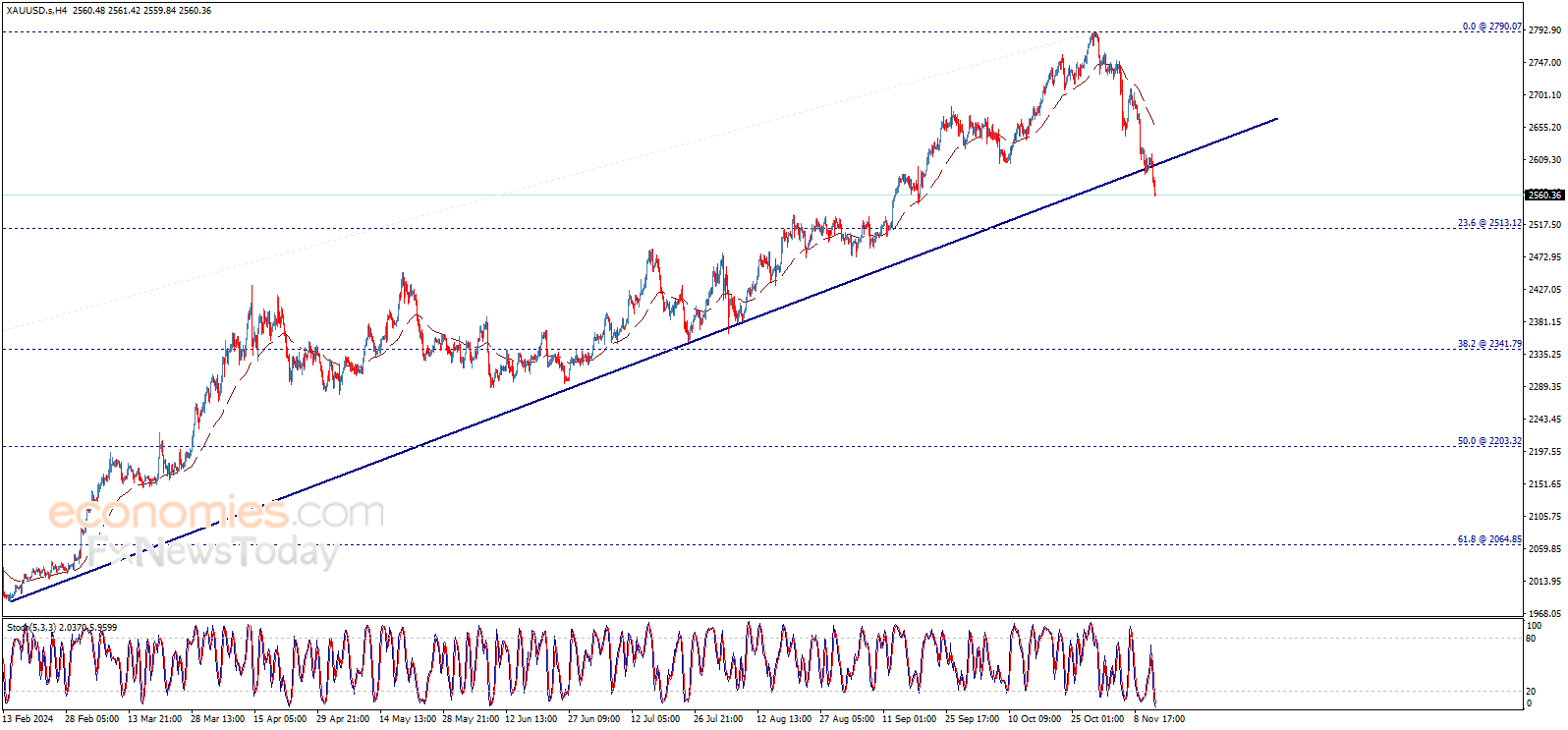 根据Economies.com,金价已经跌破重要支撑,这为金价进一步大跌打开空间,首个目标瞄准2513.10美元/盎司。