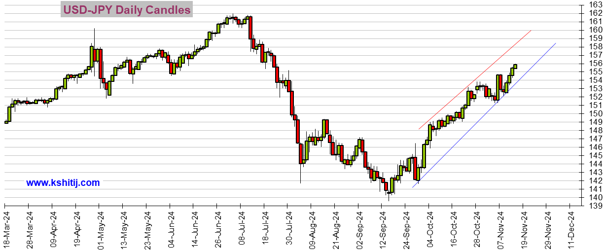 美元/日元已经突破过去几天我们一直关注的152-155区间。如果上升势头持续下去,汇价可能很快就会测试157-158。