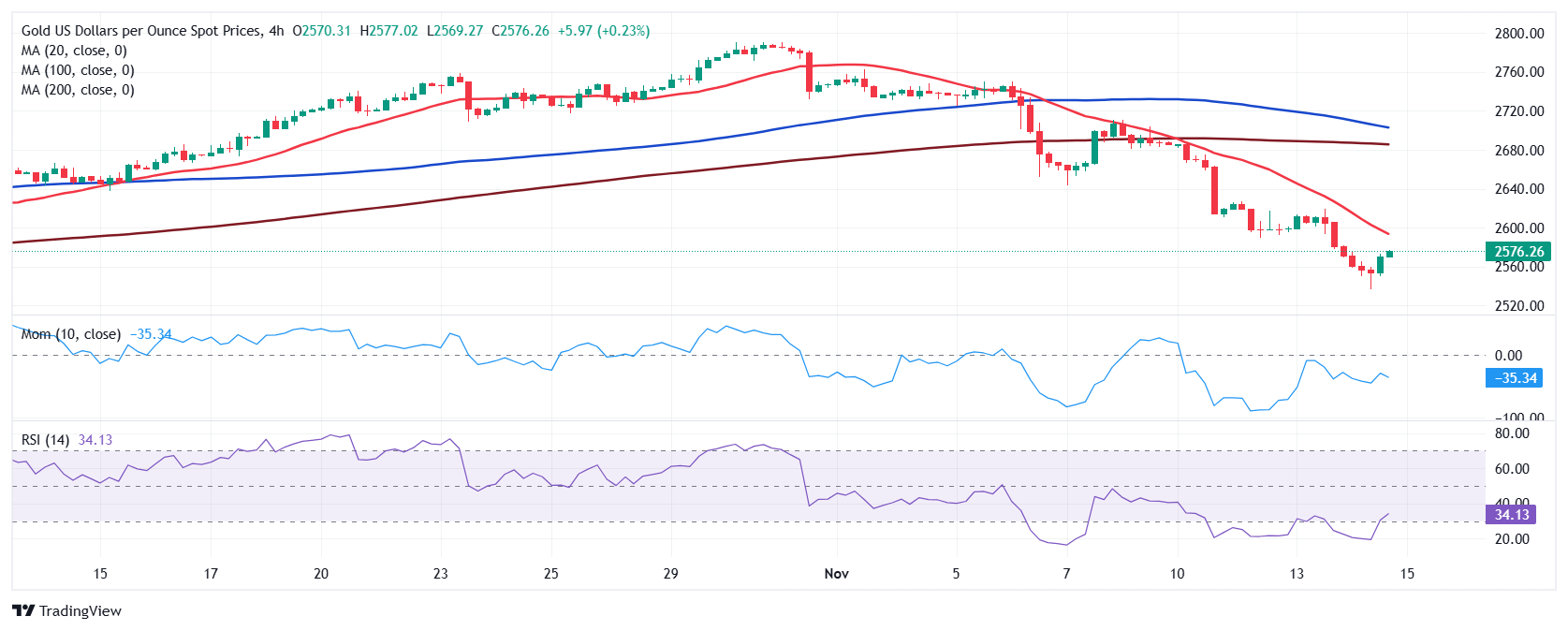 周五(11月15日)亚市盘中,现货黄金维持日内反弹走势,金价目前位于2570美元/盎司附近。FXStreet首席分析师Valeria Bednarik撰文,对黄金技术前景进行分析。