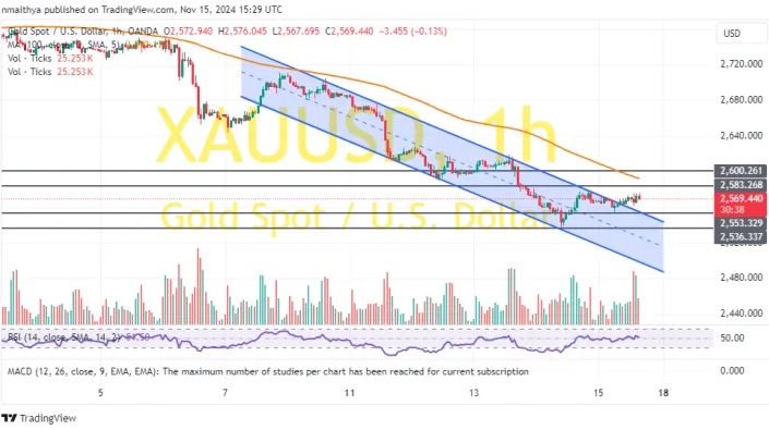 Kitonyi写道,金价在上周四从趋势线支撑位2536美元/盎司反弹后,已经反弹至2569美元上方。在60分钟的图表中,金价也完成从下行通道的向上突破。