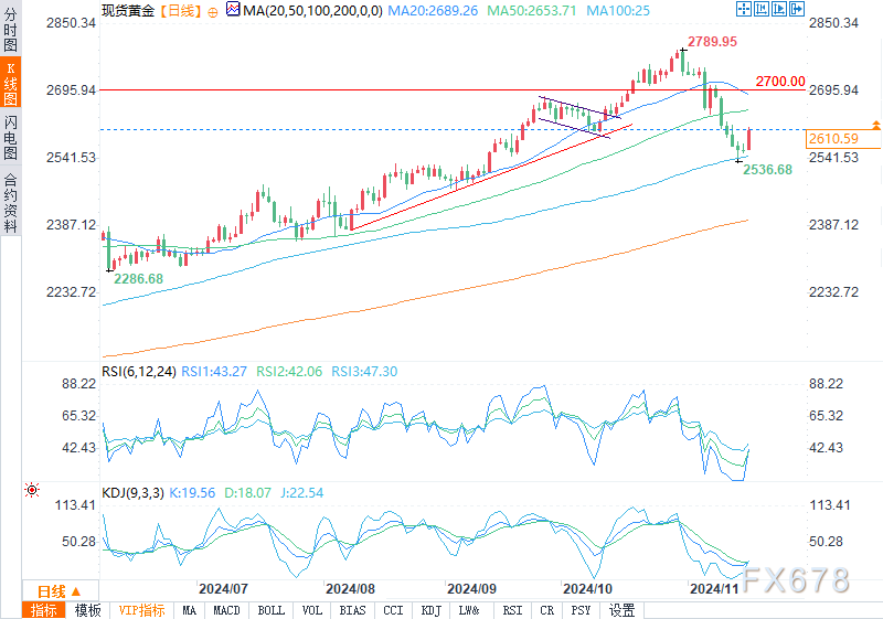 周一(11月18日)美盘时段,本周黄金以健康的反弹开始。上周五日线图上出现了一个十字星,也是一个内包线,暗示了近期回调的可能性。现在的问题是,这是否能转化为更进一步的走势。