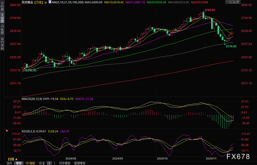 周三(11月20日)亚市早盘,现货黄金在2633美元附近震荡。金价周二上涨0.79%,为连续第二个交易日攀升,收报2632.08美元/盎司,盘中曾创下一周新高至2639.35美元/盎司,在美国政府日前对ATACMS导弹的使用开了绿灯后,乌克兰周二在俄乌战争的第1000天动用美国的ATACMS导弹袭击俄罗斯领土,引发了对避险资产的抢购,同时投资者在等待美联储利率计划的关键信号。