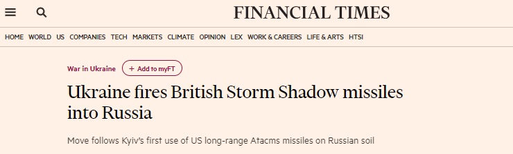 此外,《泰晤士报》还援引消息人士的话报道称,禁止乌克兰在俄罗斯领土上使用英国“风暴之影 ”导弹的禁令很可能已经解除。