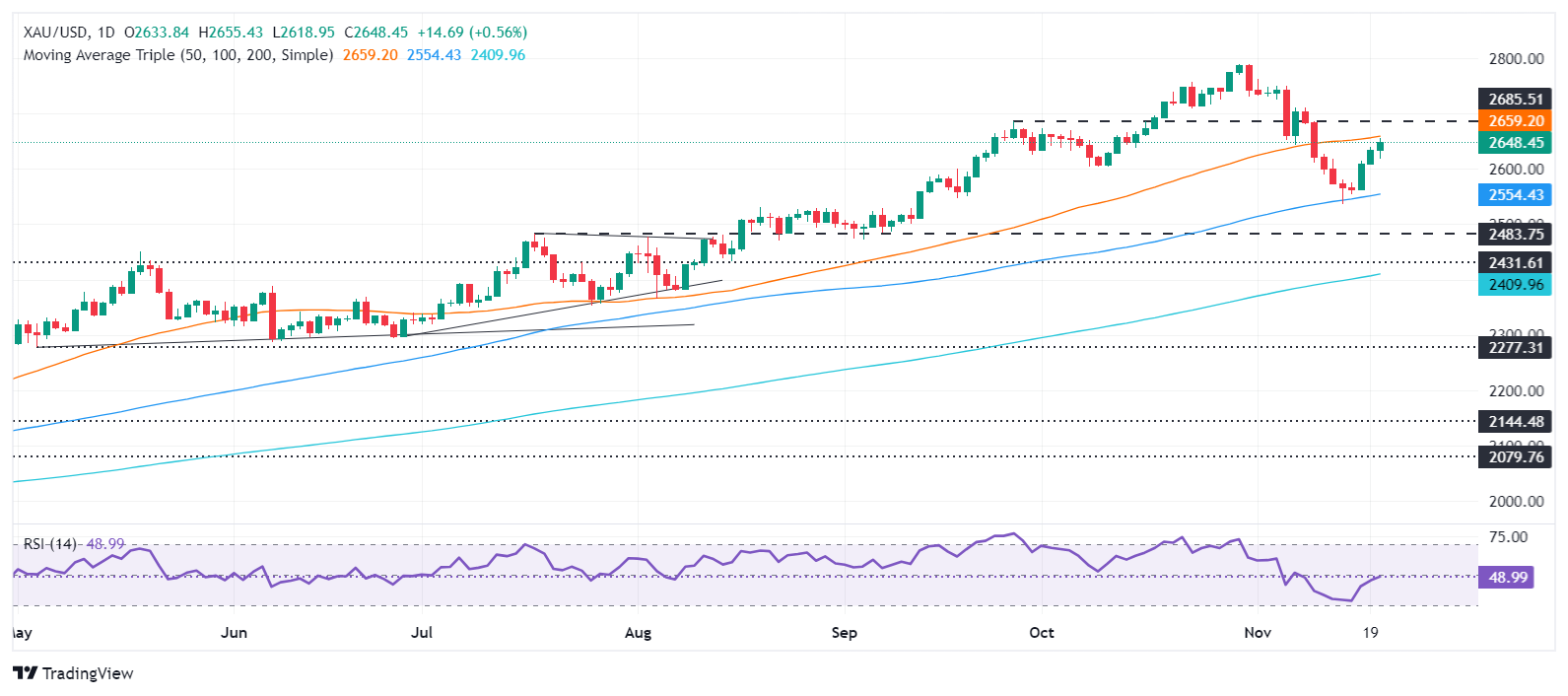 FXStreet分析师Christian Borjon Valencia指出,金价走势偏于上行,但买家必须清除关键阻力位。如果金价攻克50日移动平均线(SMA)2658美元/盎司,则可能在2700美元/盎司附近遭遇障碍。一旦突破后者,金价将瞄准11月7日高位2710美元/盎司和心理价位2750美元/盎司。