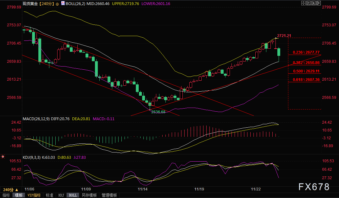 值得一提的是,因为本周将迎来美国感恩节,也是11月最后一周,部分黄金多头也趁机在高位获利了结,而金价在跌破2690后,明显触发了不少多头的止损和程式化交易,金价进而快速跳水近30美元跌至2660关口附近。