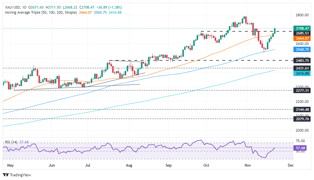 FXStreet分析师Christian Borjon Valencia表示,黄金的涨势将继续,价格有望再次挑战2750美元。黄金上周突破50日简单移动平均线(SMA)的2663美元后,促使买家推高黄金现货价格。