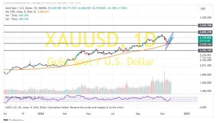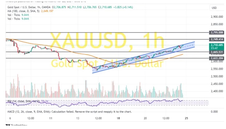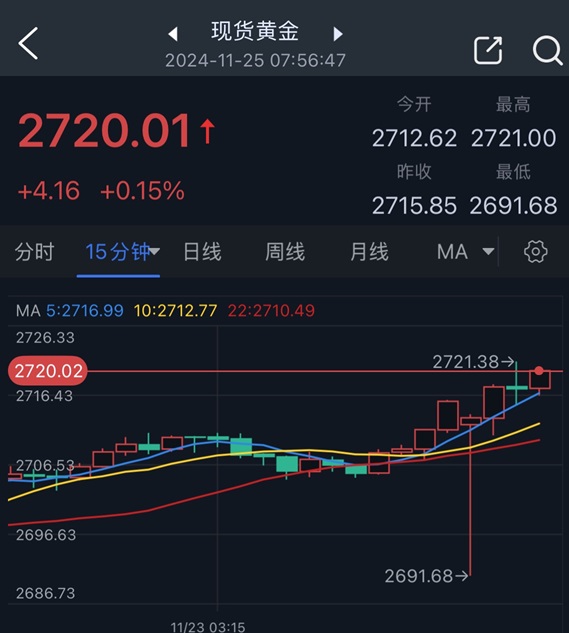 24K99讯 周一(11月25日)亚洲交易时段开始后,现货黄金剧烈波动,金价一度大跌至2691.68美元/盎司,但随后金价大幅反弹,刚刚最高触及2721.38美元/盎司。知名财经网站FXDailyReport分析师Nicholas Kitonyi撰文,对黄金后市走势进行分析。