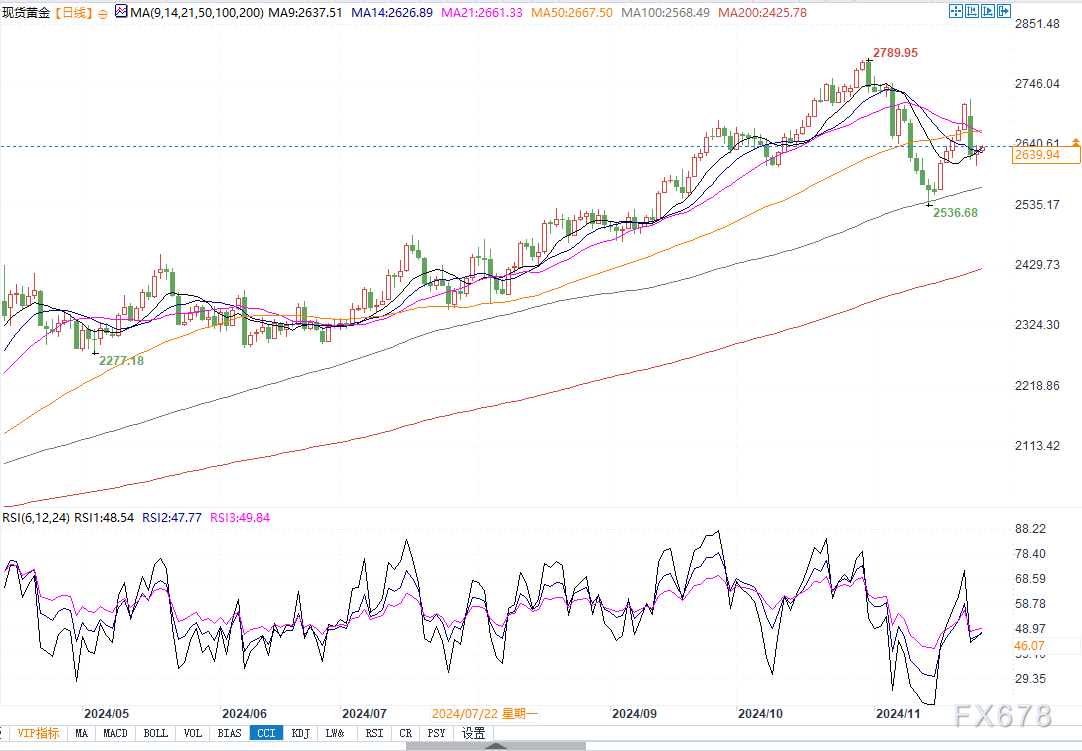 北京时间11月27日13:31,现货黄金报2642.00美元/盎司