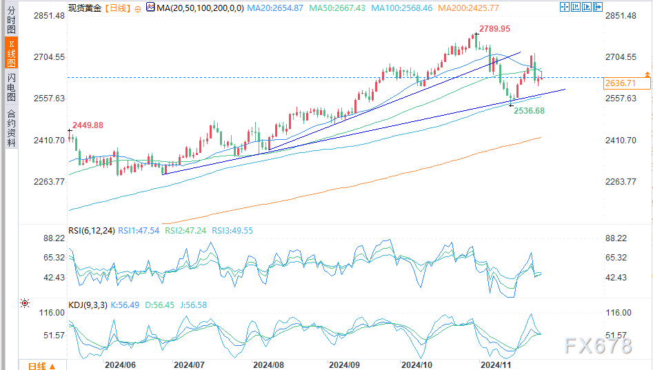 周三(11月27日)美盘时段,黄金盘中小幅上涨。在上周末特朗普提名斯科特·贝森特(Scott Bessent)为财政部长后,金价本周开局不利。贝森特被视为财政鹰派人物。