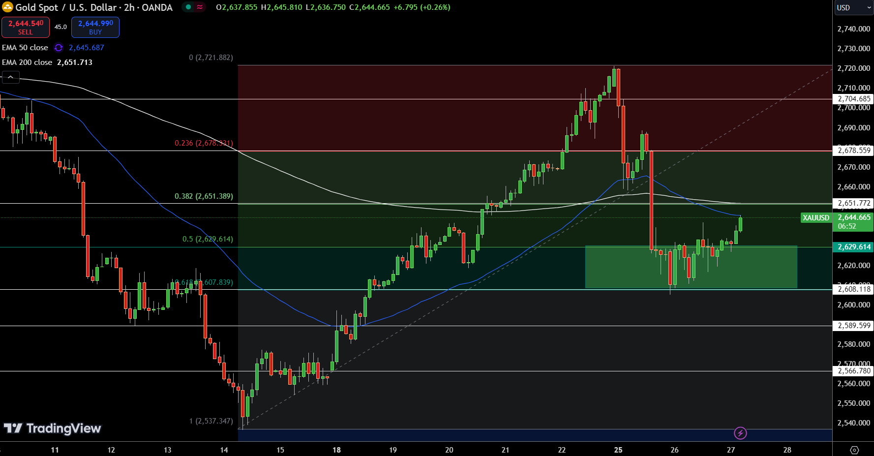 突破这一阻力位可能预示着进一步看涨势头,目标为2678.56美元。