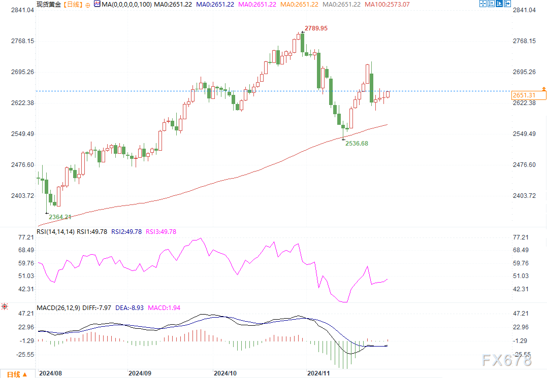北京时间11月29日10:36,现货黄金报2659.81美元/盎司