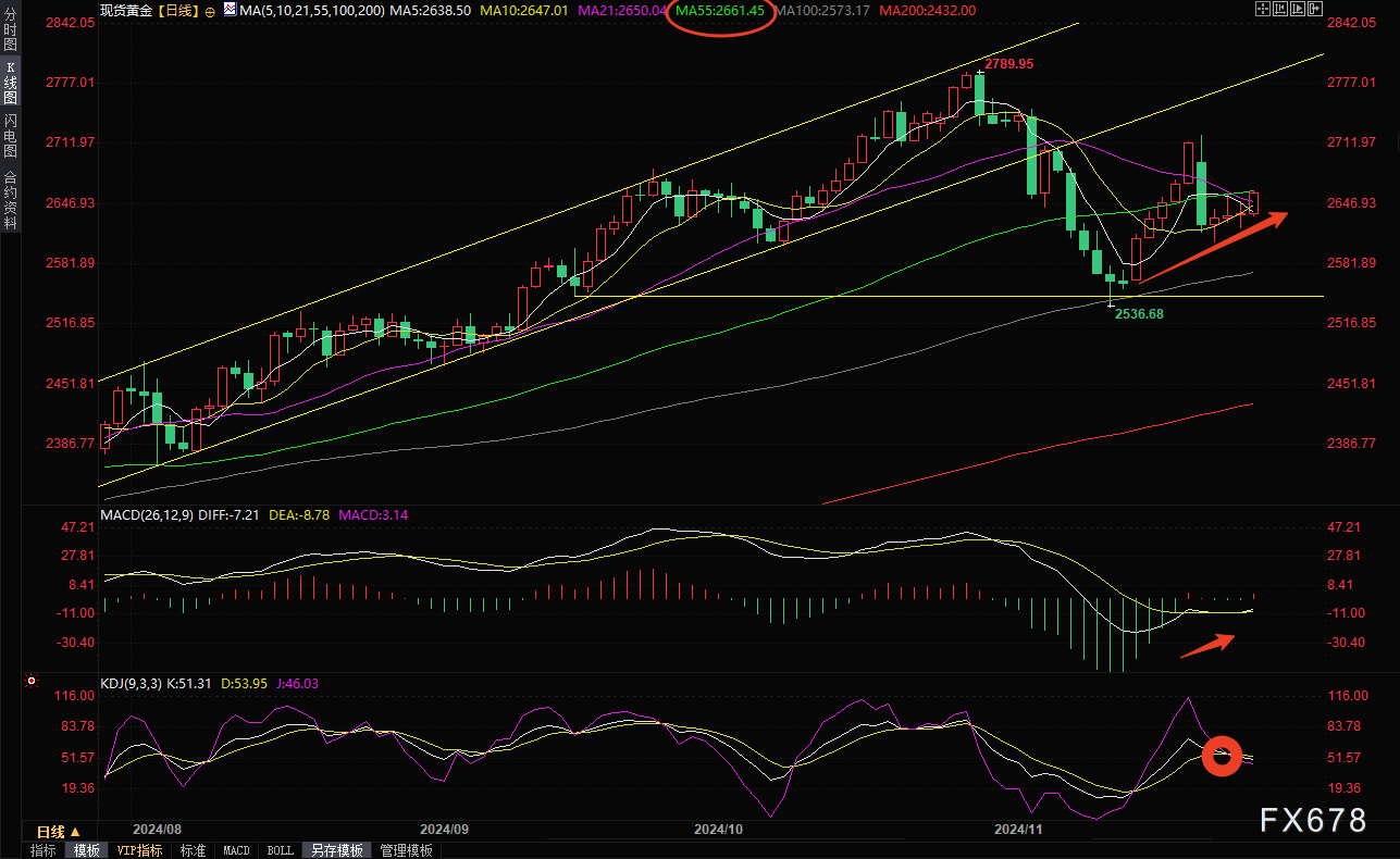 技术面来看,金价本周一大跌后一直处于反弹调整修正走势,MACD粘合后初步翻红,短线留意55日均线2661.44附近阻力,如果能站稳在该位置上方,则增加后市看涨信号,进一步阻力参考2680关口和;有望KDJ死叉运行,如果不能顶破55日均线附近阻力,则需要提防金价重回跌势的可能性。