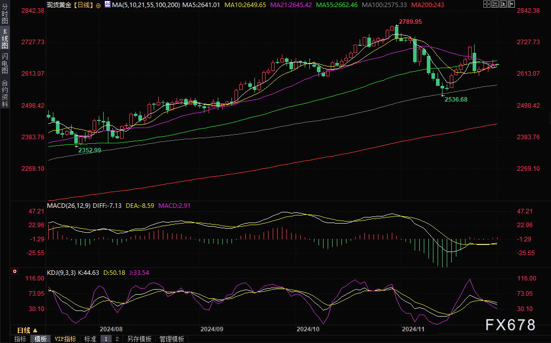 周一(12月2日)亚市早盘,现货黄金震荡微跌,目前交投于2646.95美元/盎司。金价上周五小幅上涨,受美元下跌和持续的地缘政治紧张局势提振,但11月仍创下去年9月以来最大月跌幅,主要是特朗普胜选引发的后抛售。