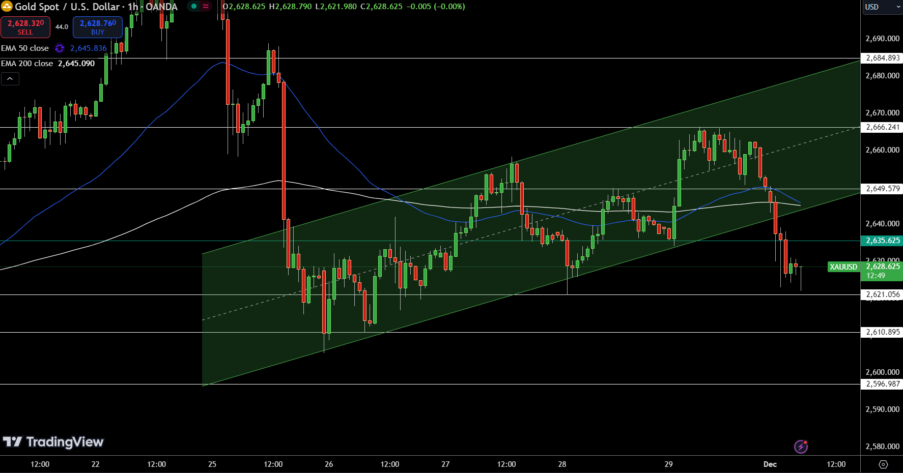 FXEmpire分析师Arslan Ali表示,黄金跌破2635.63美元的枢轴点后,看跌势头占据上风。黄金已突破上行通道,表明下行压力可能持续。