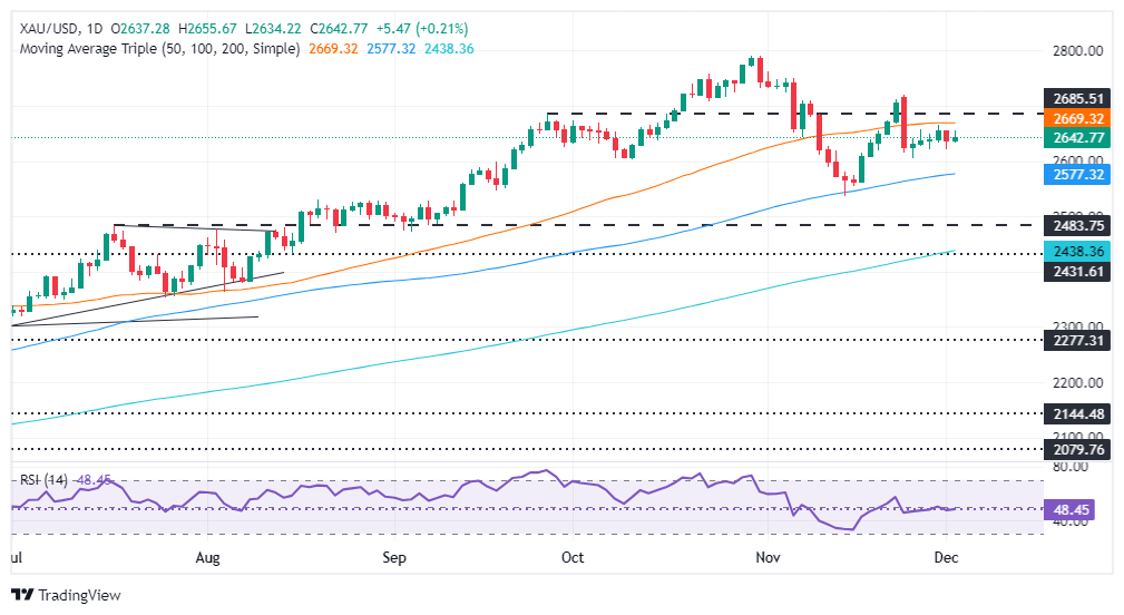 FXStreet分析师Christian Borjon Valencia指出,黄金的上行趋势仍未改变,金价还未能突破50日简单移动平均线(SMA)2688美元/盎司。一旦突破该水准,可能为买家挑战2700美元/盎司关口铺平道路。