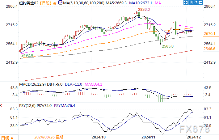 北京时间12月5日11:15 纽约黄金2月期货报 2671.10美元/盎司