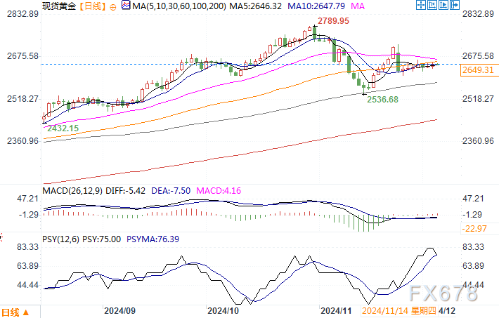 北京时间12月5日9:47 现货黄金 报 2647.31 美元/盎司