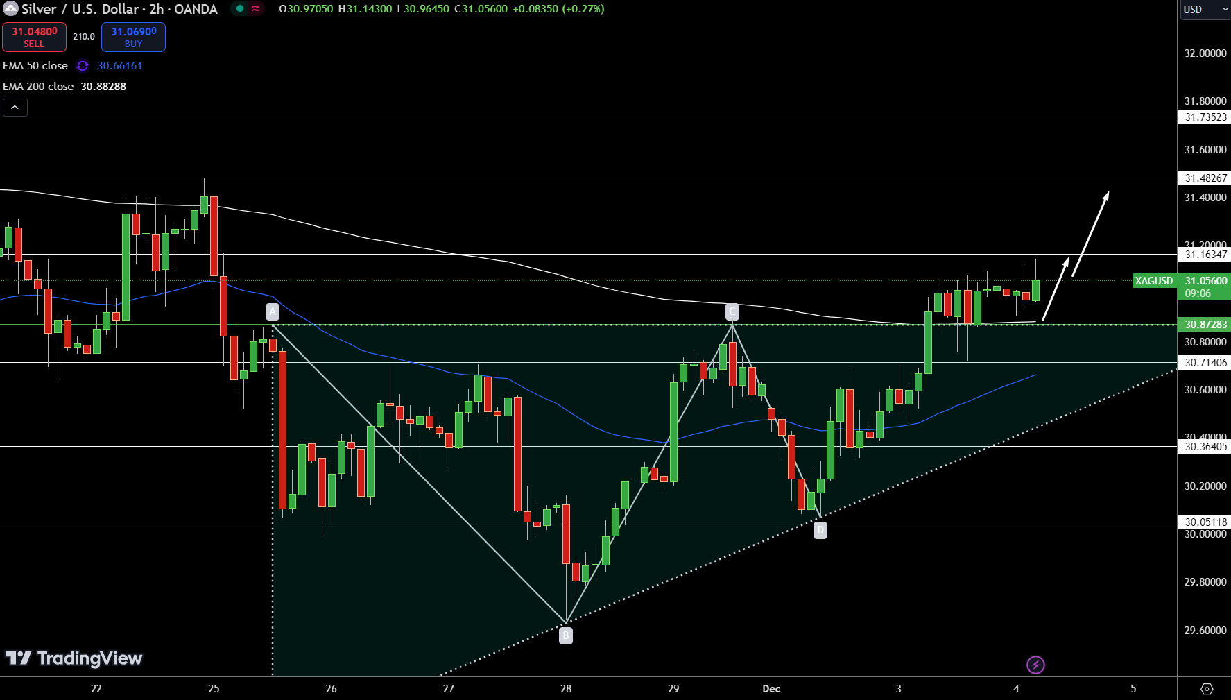 如果白银价格维持在30.87美元上方,则可能保持上涨势头,突破31.16美元将为进一步上涨铺平道路。然而,跌破30.87美元可能预示着转向看跌修正。