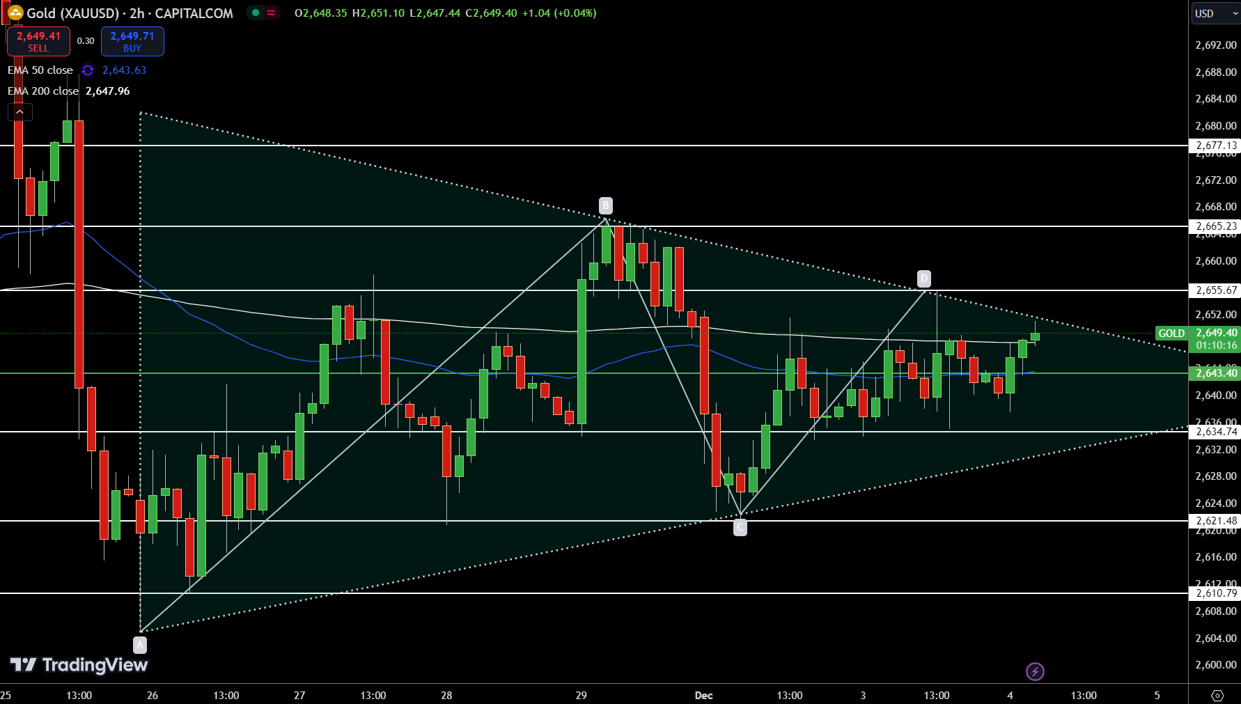 对称三角形模式表明,突破2655.67美元或跌破2643.40美元将决定方向。交易者应关注决定性举措,以判断下一个趋势。