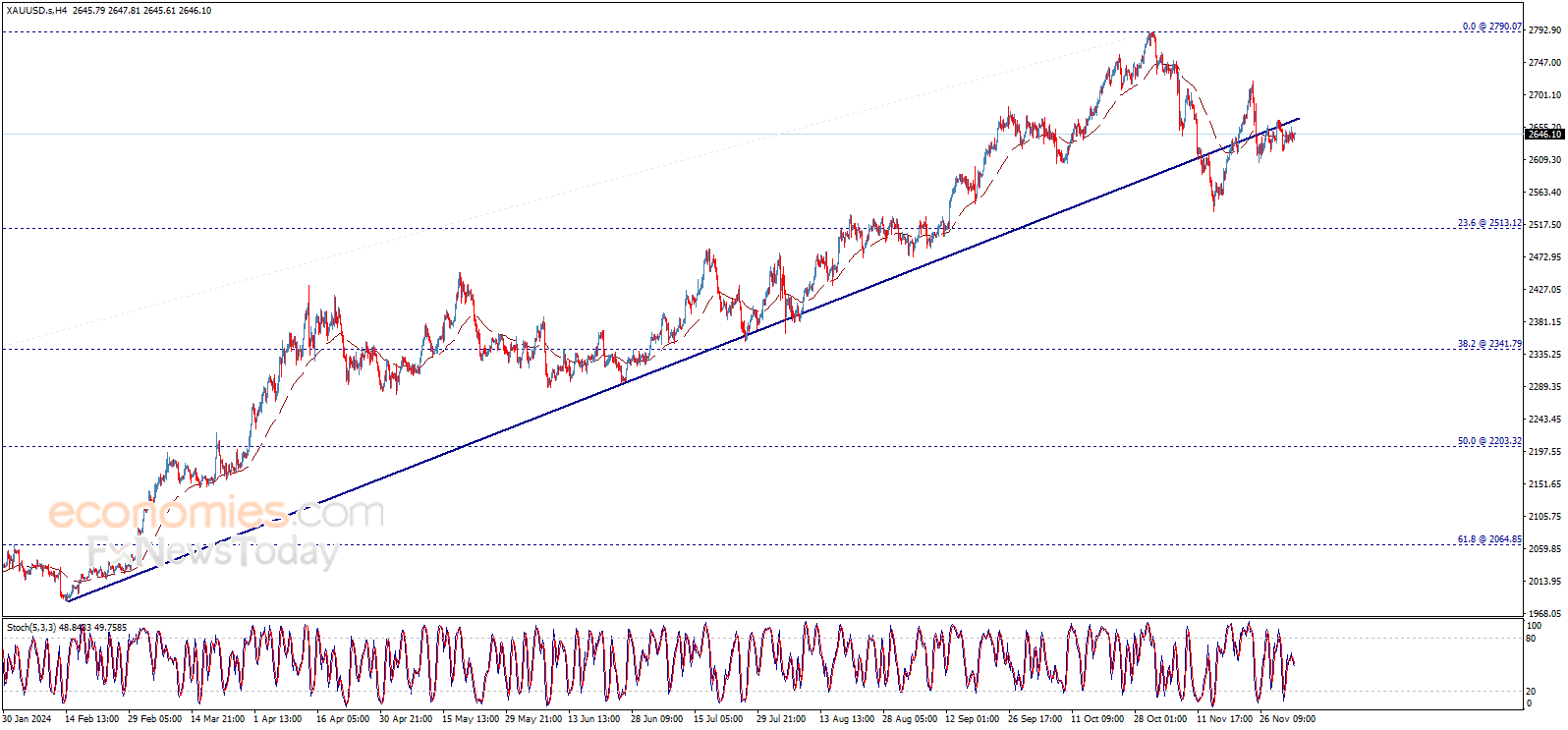 (现货黄金4小时图 来源:Economies.com)