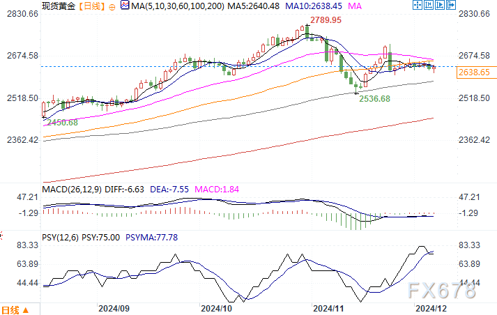 北京时间12月6日14:27 现货黄金 报 2638.65 美元/盎司