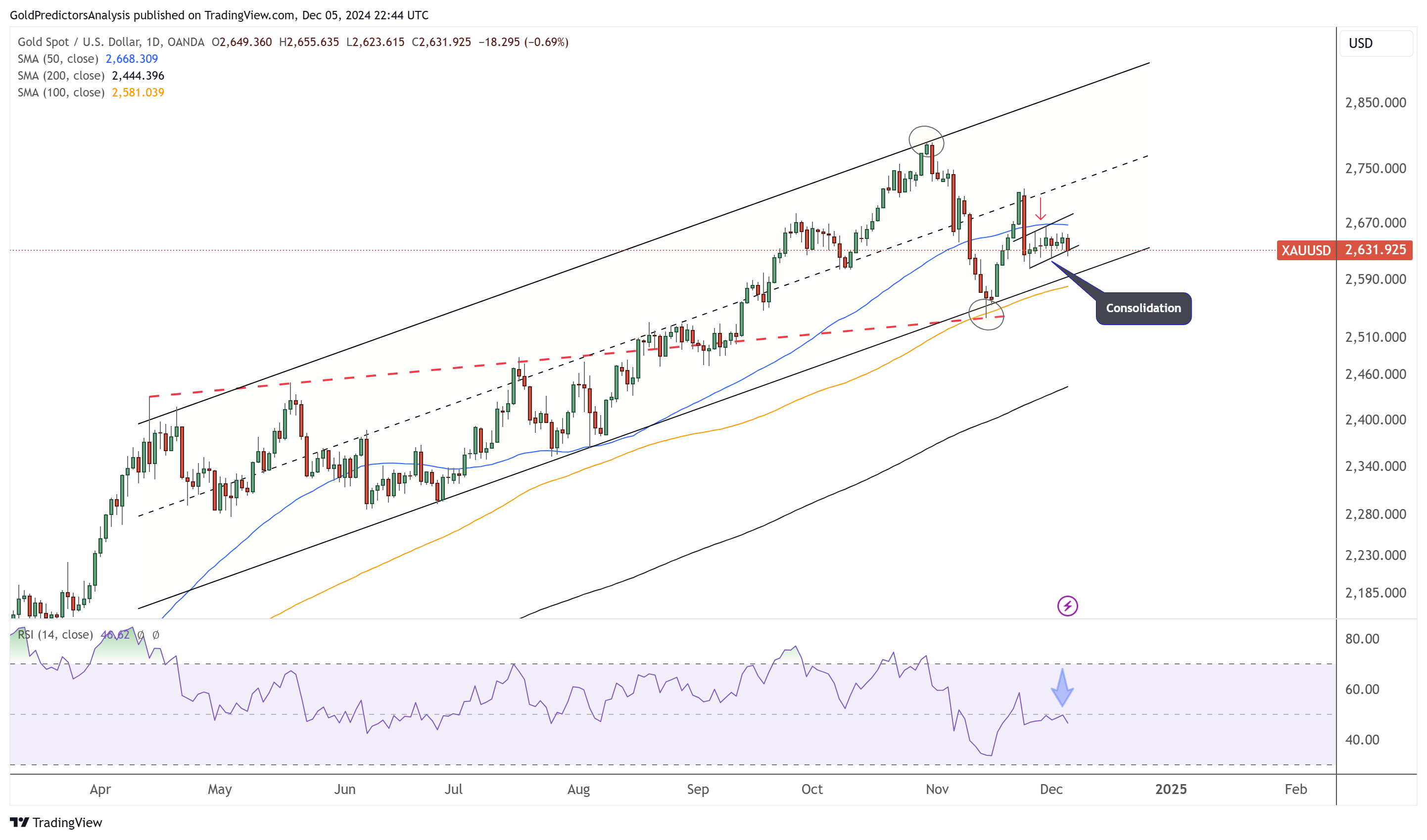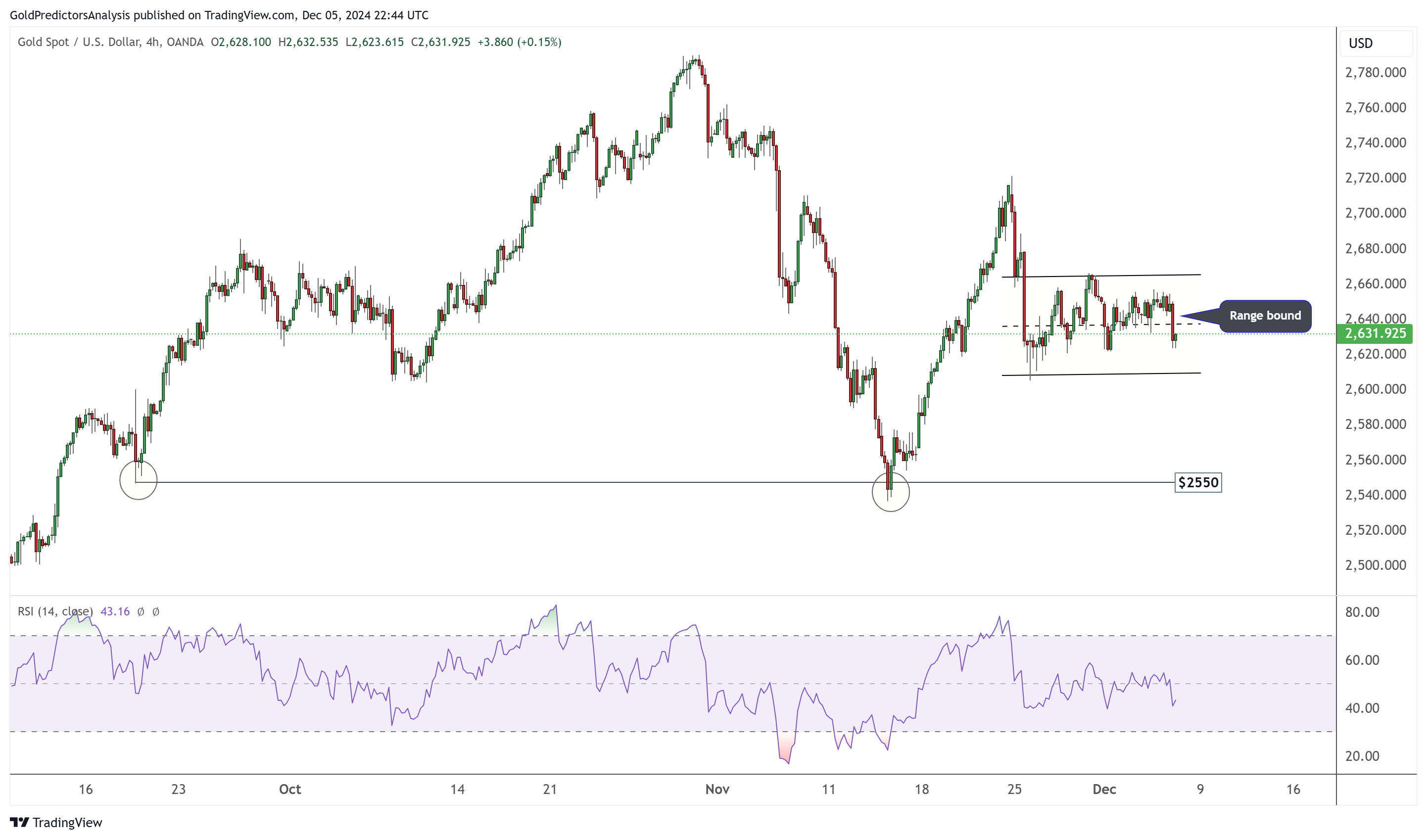 然而,12月的典型特征是流动性稀薄,这往往会导致假走势和长期盘整。如果金价保持在红点趋势线2540美元上方,整体趋势仍看涨。
