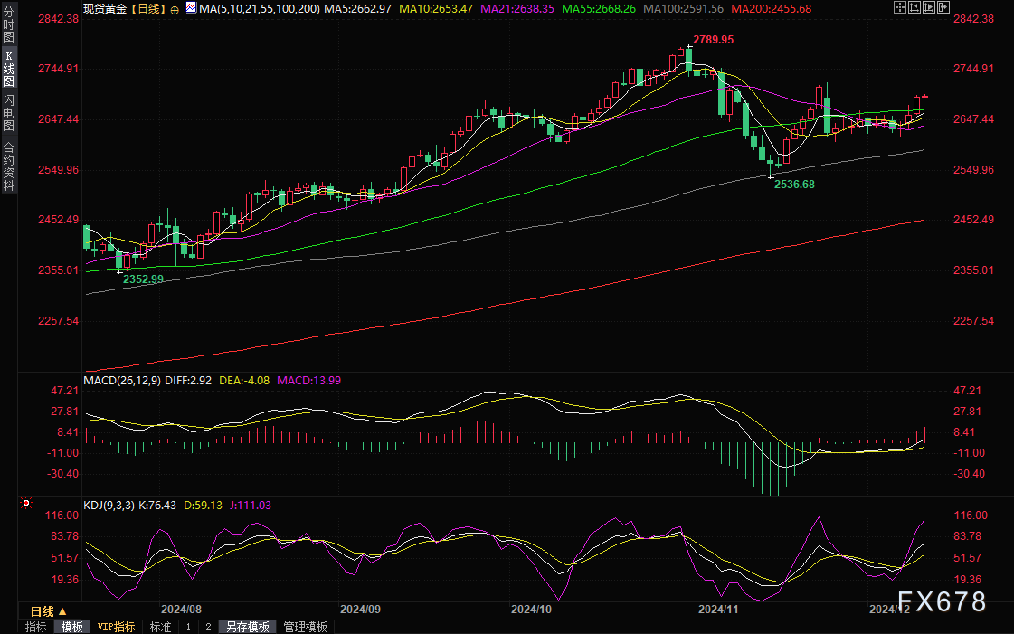 周三(12月11日)亚市早盘,现货黄金延续涨势,一度刷新逾两周高点至2698.20美元/盎司。金价周二大涨1.27%,初步顶破了过去两周的震荡区间,受地缘政治紧张局势升温和美联储下周第三次降息预期支撑,同时市场目光转向周三的美国通胀数据。