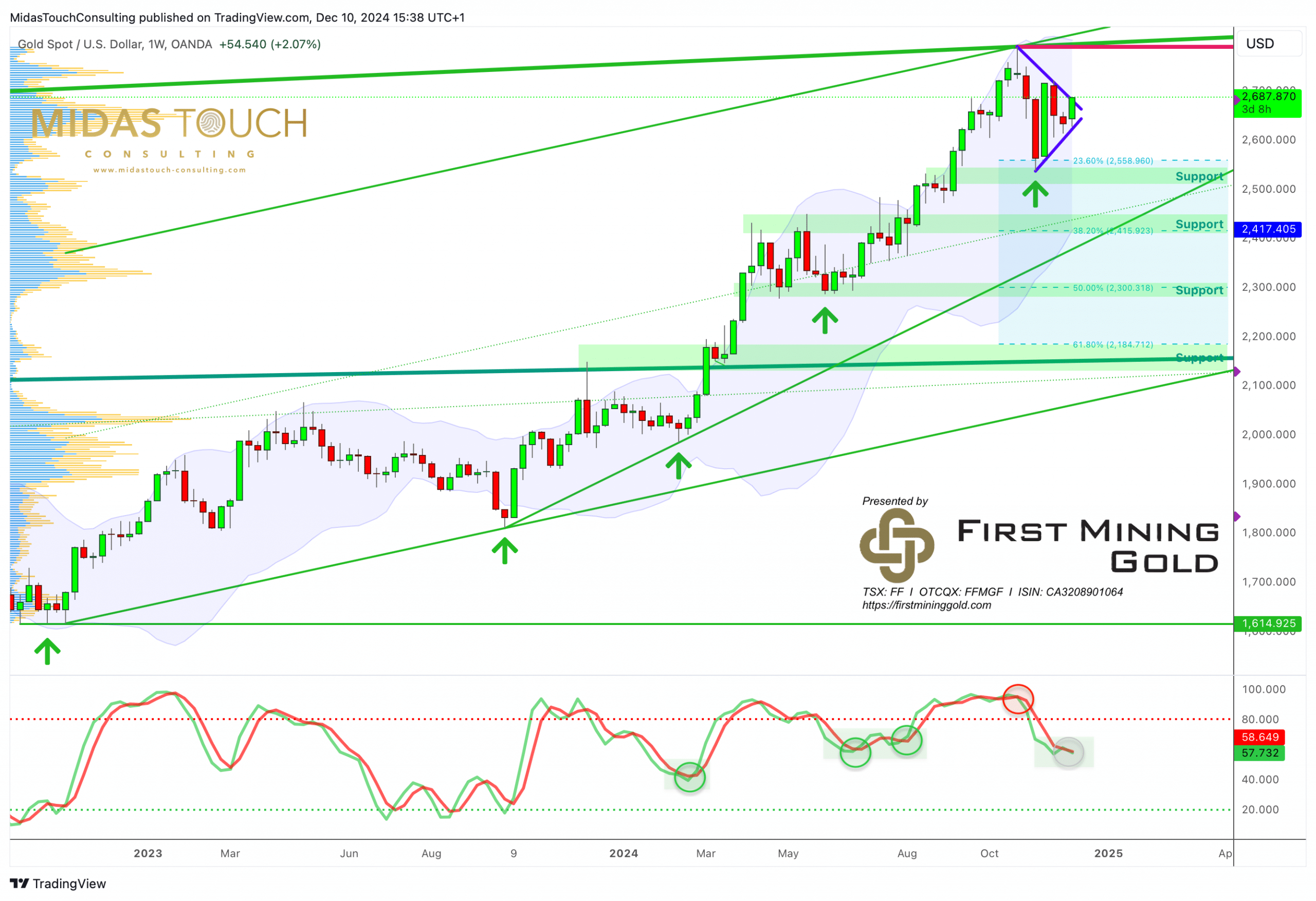 但这情景似乎更有可能,金价已经突破下行趋势线,已经走在2700-2720美元的路上。一旦突破下一个阻力位,历史高点2790美元应该很快就会成为下一个目标。