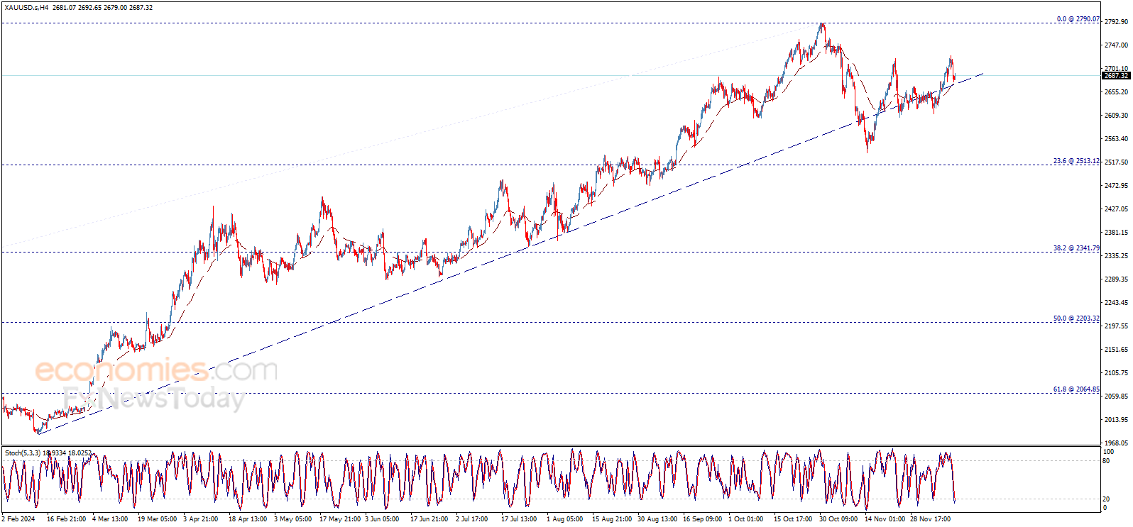 24K99讯 周五(12月13日)亚市尾盘,现货黄金维持日内反弹走势,目前金价位于2687美元/盎司附近。知名财经资讯网站Economies.com周五最新撰文,对日内黄金技术前景进行分析。