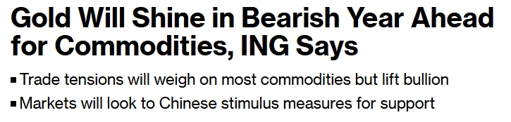 24K99讯 荷兰国际集团(ING)提出2025年市场展望,预测黄金将上行触及2760美元,各国央行持续购买,以及地缘紧张局势支撑金价。但该机构警告,明年将是能源和大宗商品熊市之年,铜和原油的走势将疲软。