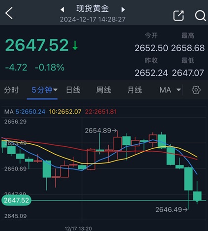 北京时间14:28,现货黄金报2647.52美元/盎司。