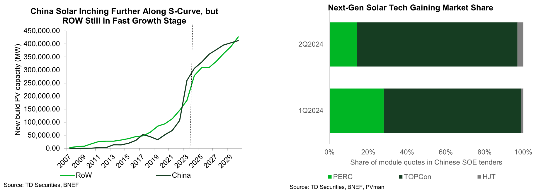 道明证券称:“传统工业需求疲软已导致自由流通股流失,但美国经济的韧性可以防止这些行业进一步疲软。与此同时,担心中国太阳能技术采用的S形曲线即将结束是没有道理的,因为全球太阳能安装仍处于技术采用的健康阶段,保证了未来产能的大幅增加。”