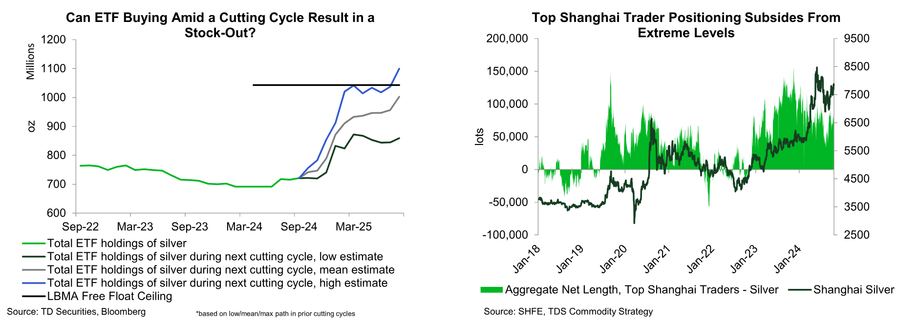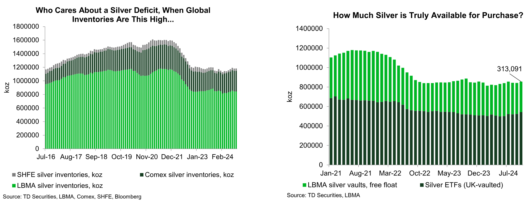 道明证券认为,美联储典型的降息周期带来的ETF购买活动增加,“可能大大缩短现有白银库存的消耗时间”。